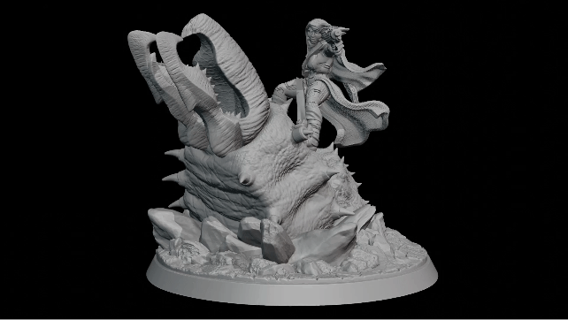 The miniatures are 2 Ashiq Fem'al Beast Riders and they are scaled at 28mm Heroic Scale (proportioned like Citadel Miniatures' new Cadian Shock Troops). These are sculpted to be printed on resin printers, and come with sculpted, themed bases, and pre-supported versions of everything.