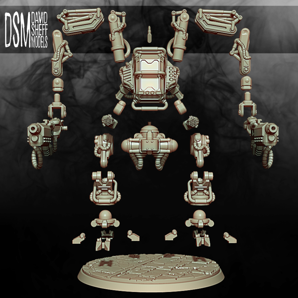 This is the URA APU MECH KIT from my UTOP/A Kickstarter campaign, found here: https://www.kickstarter.com/projects/catnippnipper/utop-a-stl-terrain-and-figures