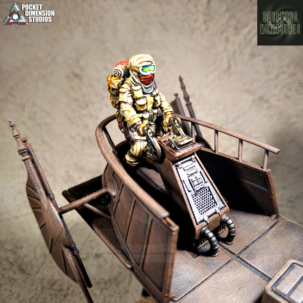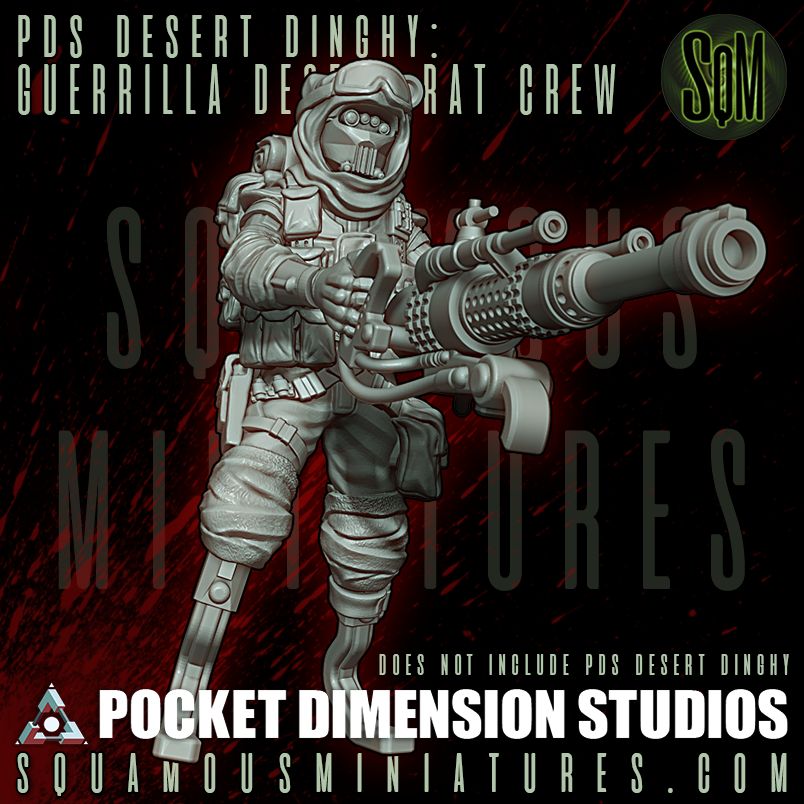 Have you bought Pocket Dimension Studios' Desert Dinghy? Got no one to pilot the thing, and man the guns? Well, wait no longer! Grab these custom-made pilot and gunner, and you can also fill the Dinghy with the rest of the Rats from this set!