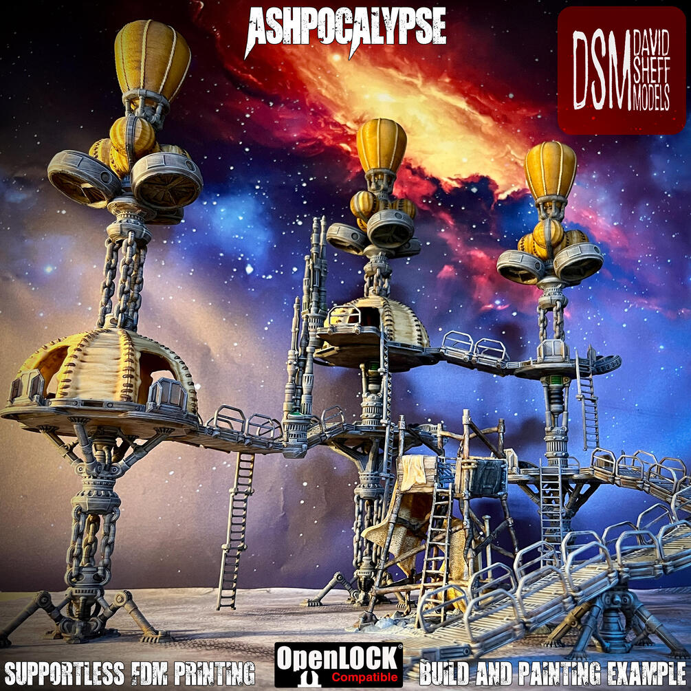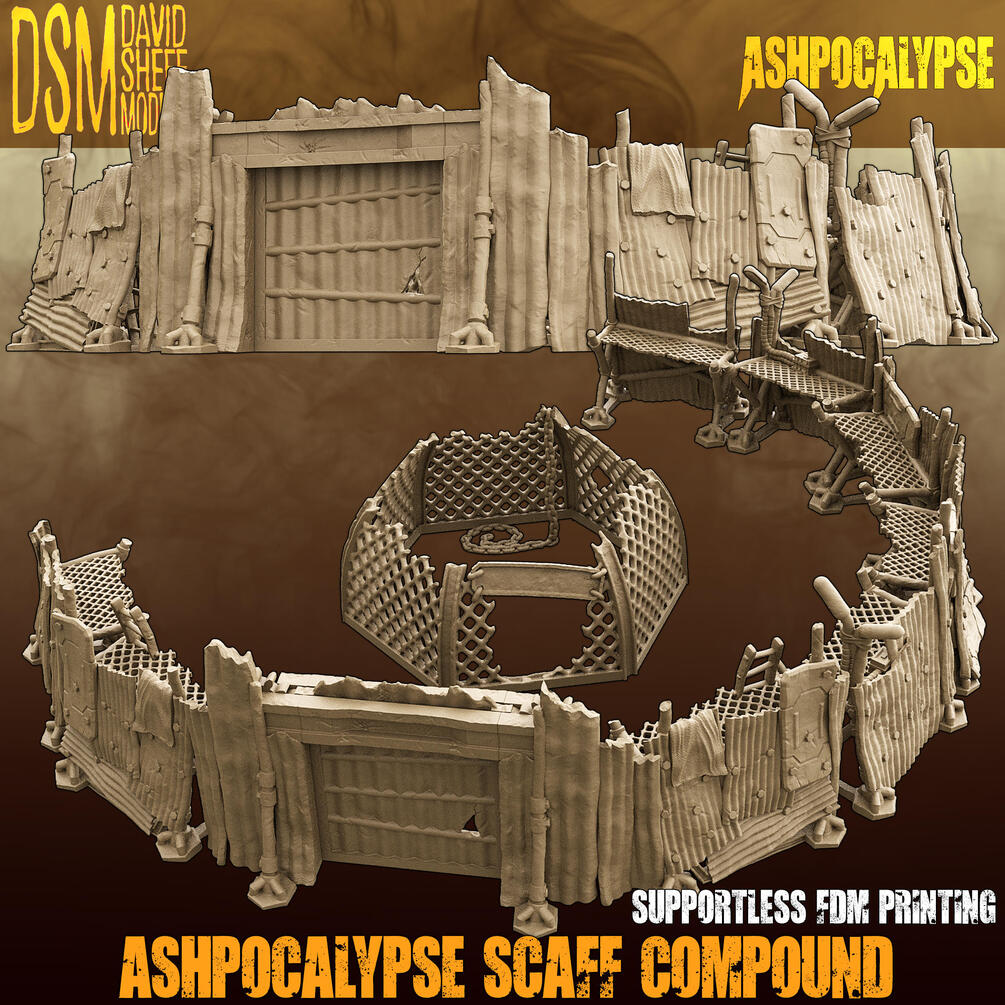 - ASHPOCALYPSE SCAFF COMPOUND, TOWER, AND TOWER TOP (for supportless FDM printing)