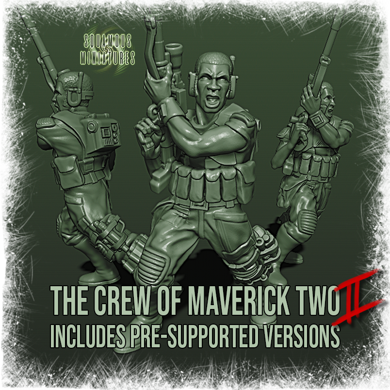 The Sniper of the Maverick Two in two different poses, with pre-supported versions.