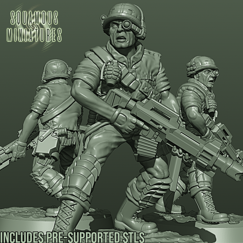 2 STL files of a Jungle Fighter. He is shouting a warning, to the members of his unit about the fast approaching Aliens and other such Tyranid types. One file comes with printer supports and is ready to print!